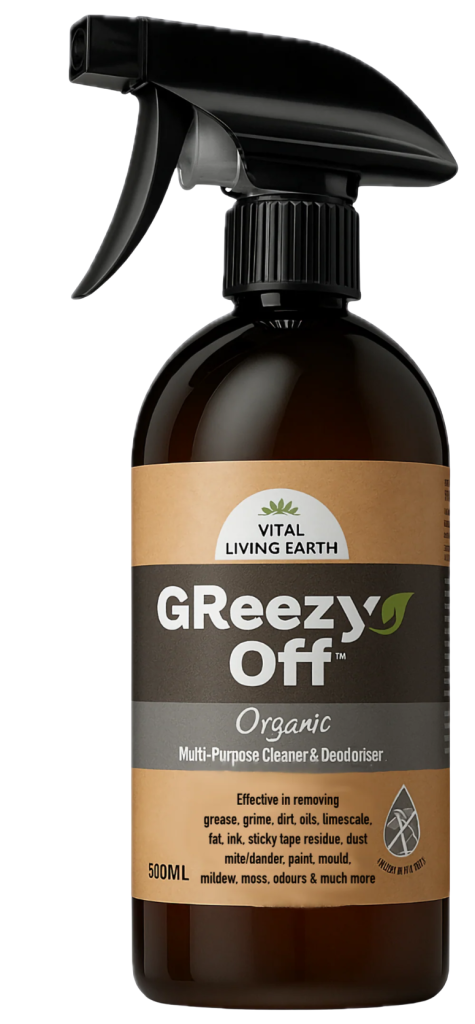 GReezy Off® 100% Organic Multi-Purpose Cleaner & Deodoriser is, as the name implies, 100% organic, comprised in a liquid form of Organic plants & vegetables.